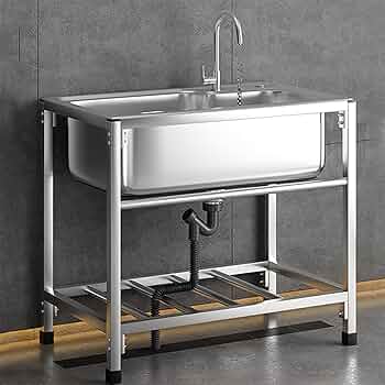 Acciaio Inox Lavello Da Cucina Indipendente Con Gambe & Rubinetto