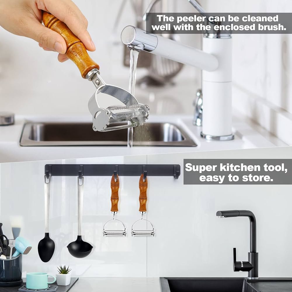 【Eccellente artigianato】La nostra cucina sbucciatore sono lame trattate elettroliticamente, tagliente e lucido visibile, può facilmente sbucciare le bucce spesse di frutta e verdura senza incepparsi, in modo da poter utilizzare pelaverdure più agevolmente. Il colore effettivo è soggetto al prodotto reale ricevuto. Godi una riduzione su 2 Pezzi Pelapatate , Pelapatate Patate Da Cucina , Pelapatate Verdure, Pelapatate Rotativo A Y In Acciaio Inossidabile Con Lame Curve E Seghettate In Acciaio Inossidabile, Manico Antiscivolo, Adatto Per Verdure E Frutta. Acquista i Pela Verdure Set 5 Coltelli E Pelapatate Da Cucina Professionali In Ceramica Lame In Pela Asparagi Il pelapatate piatto può affettare cavoli e ravanelli, quello seghettato può anche pelare il bordo esterno. Le lame rimovibili e oscillanti dello sbucciatore scivolano sulle superfici irregolari con poco sforzo, rendendolo un grande aiuto quando si lavora in cucina. 【Materiale di alta qualità】 Il nostro pelapatate è realizzato in acciaio inossidabile 420, resistente alla corrosione e non facile da arrugginire, si risciacqua direttamente e ha una lunga durata. 【Ampiamente utilizzato】Questo pelaverdure può sbucciare facilmente patate, cetrioli, carote e persino asparagi. Descrizione del prodotto 1. lame flessibili con micro-serratura e manici ergonomici per lavorare in sicurezza e sbucciare facilmente. 2. Grazie alla lama extra larga, affilata su entrambi i lati, è possibile sbucciare anche verdure di grandi dimensioni con buccia dura, come zucca e cavolo rapa.