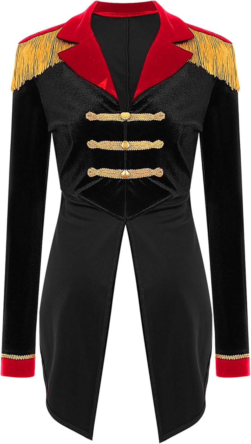 Progettato con supporto Collare, manica lunga con polsini color block, decorazioni Oro e bordi con nappine Spalla, chiusura con bottoni I classici capispalla da circo con dettagli Oro aggiungono un senso di lusso. E il colore rosso e Oro ti fanno sembrare Ottimo per giochi di ruolo, Halloween, feste a tema, spettacoli teatrali, balli in maschera, ecc Realizzato in tessuto morbido, traspirante, comodo da toccare e da indossare, ti fa sentire bene Paese di origine : Cina La giacca è decorata con finiture in treccia dorata, ti rende più accattivante Costume Domatrice Circo Zaldita Donna Giacca Da Domatrice Circa Blazer Da Ringmaster Vestito Domatrice Giacca da donna manica lunga, stand Collare, bordo Spalla sfrangiato, chiusura con bottoni