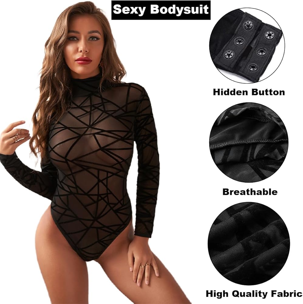 SamHeng Body Trasparente Da Donna Body Nero A Maniche Lunghe Elastico