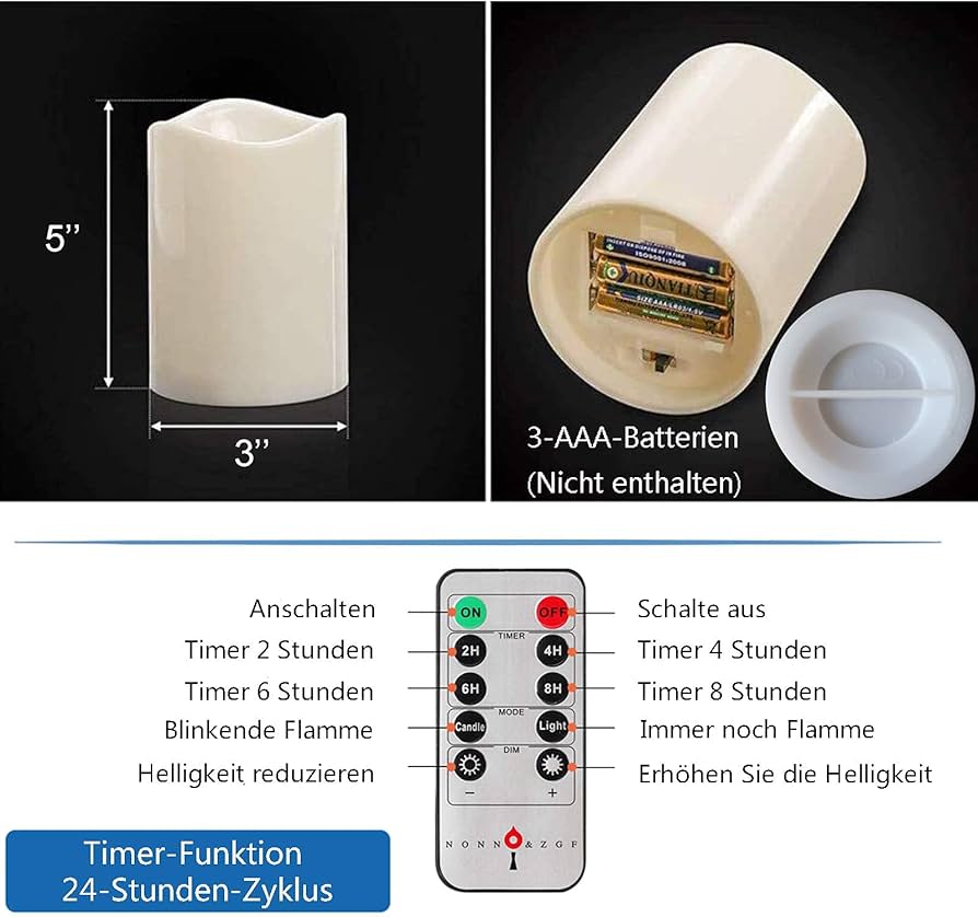 Utilizzo: Per esterni e interni Candela Bianca Candele Impermeabili Da Esterno A LED Da 3 Pezzi, Candela In Plastica Alimentata A Batteria Con Telecomando / Funzione Timer (luce Bianca Calda) - 8 Cm X 10 Cm : Amazon.it: Illuminazione Candele Led - Premere Candle per ottenere una luce tremolante. Impermeabile La candela è impermeabile, si prega di non immergere le candele in acqua a lungo. Compra Candele Impermeabili da Esterno a LED da 2 Pezzi, Candela in plastica alimentata a Batteria con Telecomando/Funzione Timer (Luce Bianca Calda) - 10 cm x 25 cm a prezzi vantaggiosi su . Spedizione Gratuita + Consegna in 1 Giorno disponibile 【Esterno】 Candele a LED per uso esterno. Dimensioni: 10 cm x 20 cm, in plastica, si sente come cera di paraffina. Descrizione prodotto Candele a LEDDimensioni: 10 x 20 cm Non si scioglie sotto il sole. Adatto Adatto per esterni, cortili, giardini, davanzali, campeggio o decorazioni per feste di famiglia, ecc. Dimmer Il lume di candela ha 4 modalità di luminosità che possono essere regolate tramite i tasti + e - sul telecomando. Distanza del telecomando La distanza effettiva del telecomando è di 5,5 metri. Modalità: Ci sono 2 modalità per la luce della candela. - Premere Light per ottenere una luce costante. Funzionamento a batteria Ogni candela richiede 3 batterie AA (non incluse). 【Prodotto incluso】 2 candele + telecomando * 1, ogni candela richiede 3 batterie AA (non incluse). E puoi usarli per decorare la tua festa di compleanno di nozze, la vigilia di Natale e il nuovo anno.