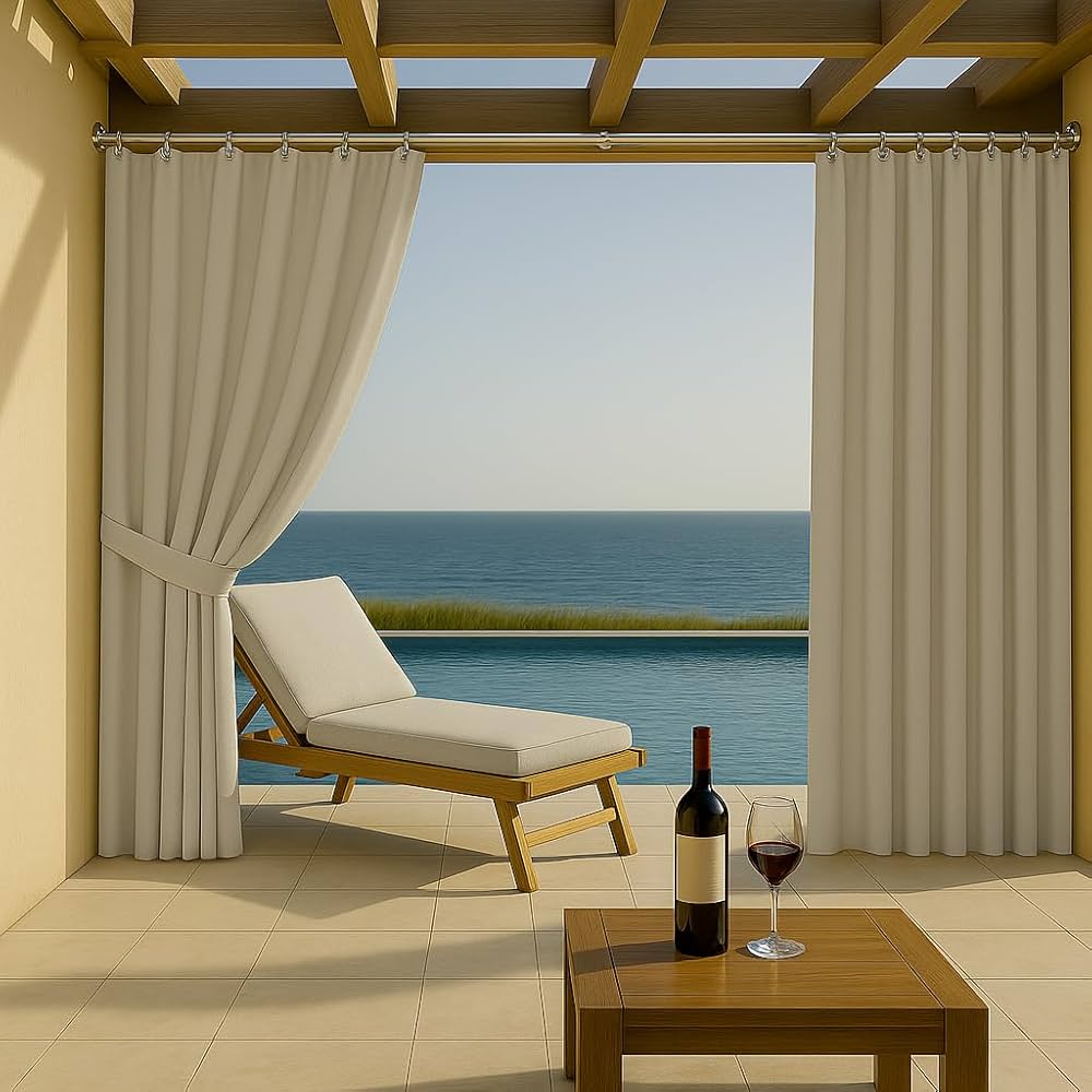 Hiseng Tende Gazebo Per Esterno Impermeabili, Motivo Vista Mare 3D Tende Da Esterno Con Occhielli Tenda Per Balcone 1 Pezzo Tenda Oscurante Da Esterno Termica (150x166cm,Alba