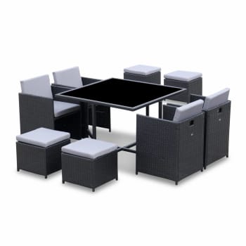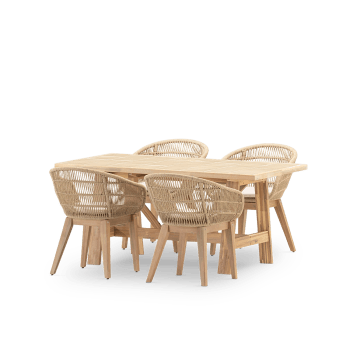 Set Tavolo Da Giardino In Resina Intrecciata, 4-8 Posti, Beige Vabo 8