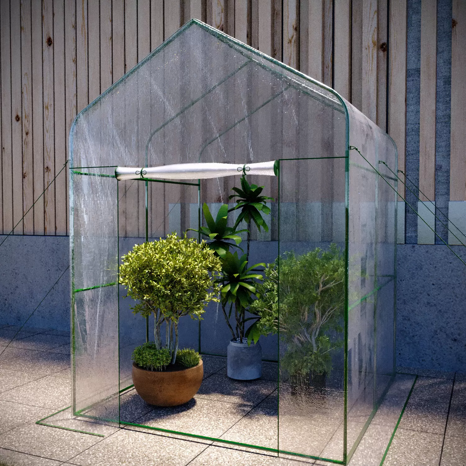 Serra A 3 Ripiani Da Giardino Per Orto Telaio In Acciaio Verniciato Telo In PVC Trasparente Porta Avvolgibile Apertura A Cerniera Protezione Piante Giardinaggio Design Sunnyside 69 X 49 X 125 Cm 84237921