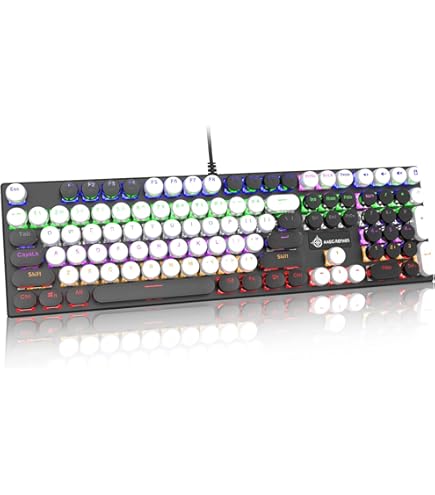 Ronyme Tastiera da Gioco Meccanica retrò Punk a 104 Tasti, Tastiera Steampunk, Tastiera illuminata, tastiere Rotonde per Tastiera da Gioco Vintage per PC 【Reattività eccellente】: con il suo design ad asse nero, la tastiera offre un tocco eccellente e una risposta rapida, rendendo le tue operazioni più fluide. 【Premium e affidabile】: la tastiera da gioco meccanica è realizzata in materiale PP, robusto, resistente all'usura, all'attrito e durevole. Tastiera Meccanica Da Gioco Cablata K600 Con 104 Tasti, Tastierino Numerico, Tasti Lineari E Giochi Retro 【Design ergonomico】: il copritasto rotondo lo rende adatto alle mani, rendendolo comodo da usare. 【104 tasti】: supporta tasti completi senza conflitti, la tastiera utilizza una connessione USB cablata per una forte stabilità, eliminando potenziali problemi di interferenza del segnale che potrebbero verificarsi con le connessioni cablate.