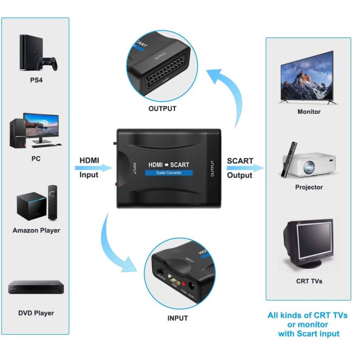 Adattatore VERO Convertitore Video Da HDMI A SCART Interfaccia HDMI2SCART | EBay