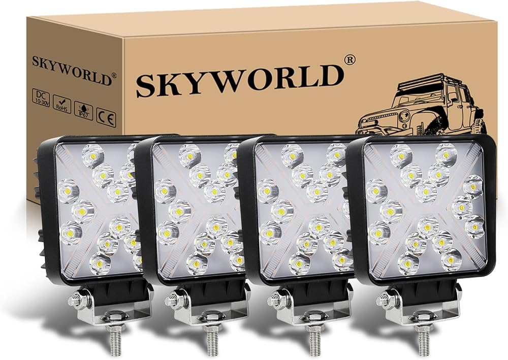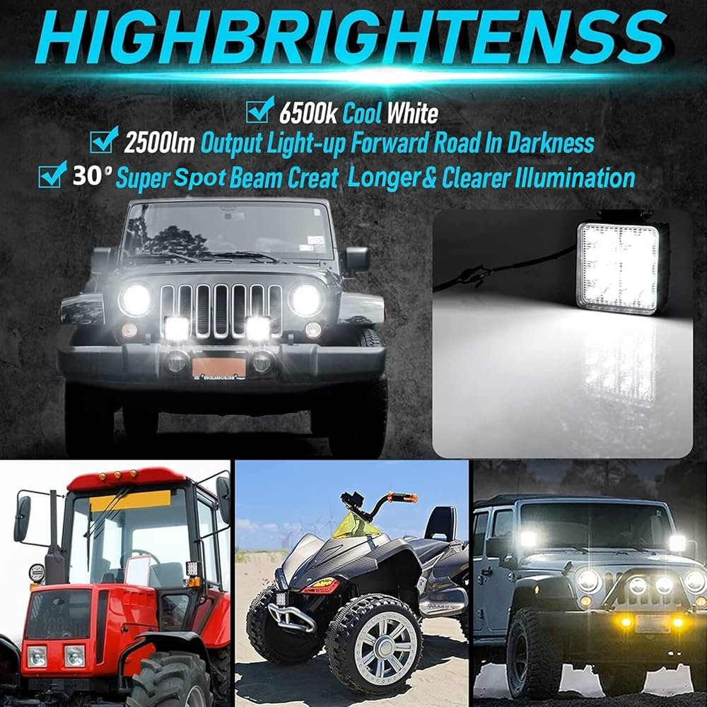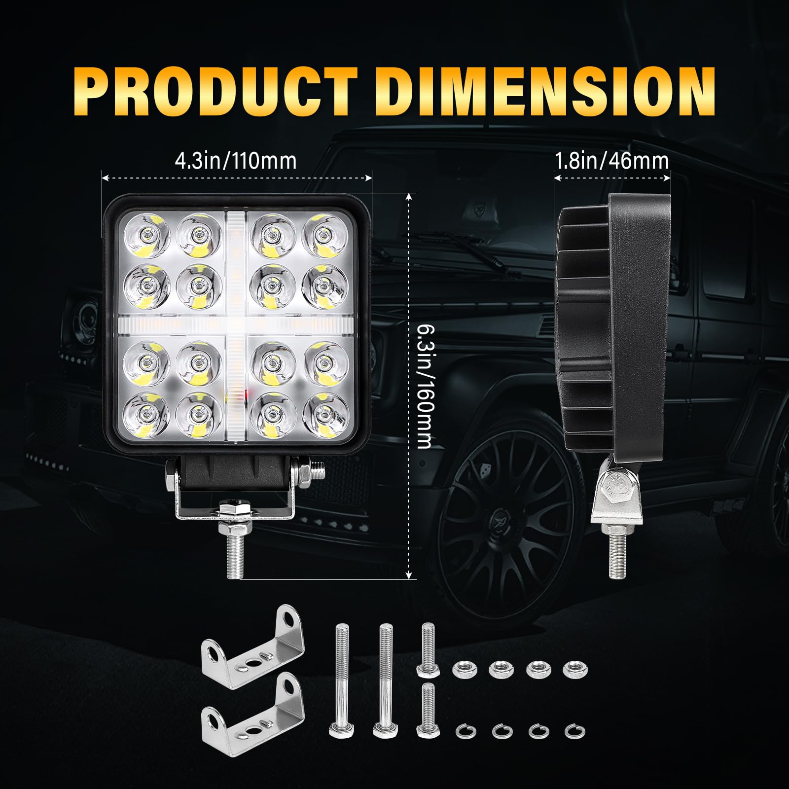 RIGIDON 2 Pcs Faro Da Lavoro Led, 4 Pollici 48W Quadrato Fari Led 12V 24V, Bianco Ambra Spot Luci Di Lavoro A Led Per Auto Fuoristrada Trattore Moto Camion SUV ATV 4x4
