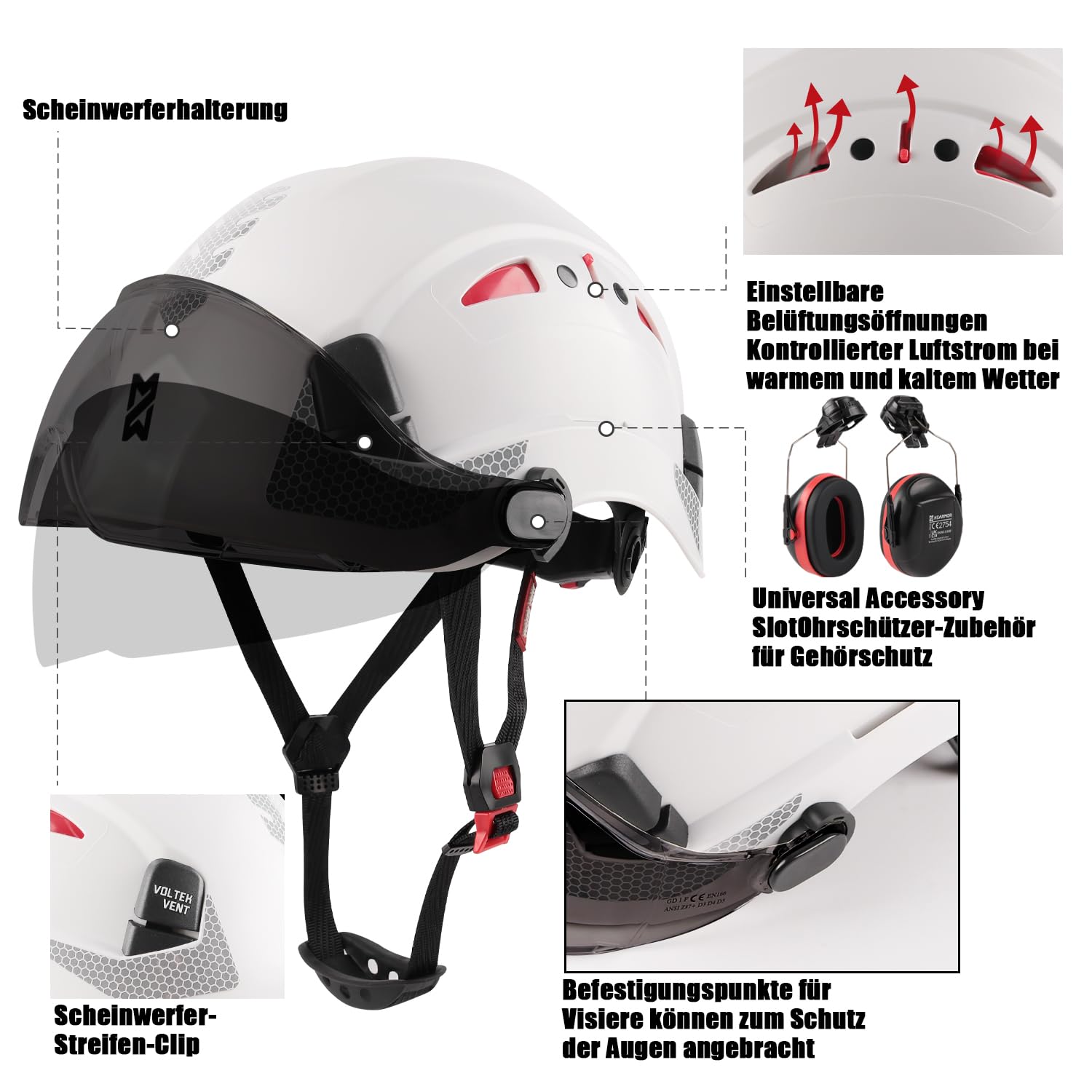 HEARMOR Casco Protettivo Con Visiera E Protezione Dell'udito, Casco Da Lavoro Ventilato Certificato EN 397, Sospensione A 6 Punti, Ideale Per L'industria E L'edilizia, Nero : Amazon.it: Fai Da Te