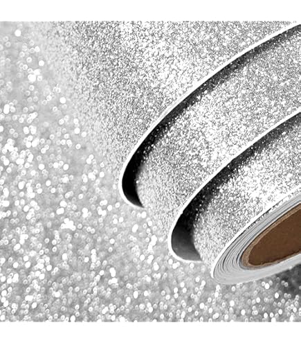 Carta Da Parati Adesiva Muro VOLEAAR Carta Da Parati Adesiva In Vinile Color Argento, 40 Cm X Pellicola Adesiva Per Mobili 🏠Materiale: Rotolo 40x200cm, carta piastrelle adesive cucina. Facilmente rimovibile pellicola adesiva cucina. 🏠Uso: Carta adesiva colorata per mobili, decorazioni, armadio, foderare mobili, scale, rivestire scatole, decorare, cameretta bimba, armadio bambini, cartone, disegni, bagno, cucina, , frigo, penisola cucina, corridoio, negozi, lavanderie, ripiani, ufficio, credenza cucina, isola cucina, rivestire mobili, casa accessori home. 🏠Multiuso: Adesivi per mobili, glitter per decorazioni argento, carta da parati glitterata per camera da letto, carte adesive decorative per mobili, carta adesiva glitterata per pareti, carta adesiva per mobili fantasia, carta da parati per bambini cameretta La pittura di alta qualità garantisce che non sbiadisca per anni. 🏠Carta da parati del DIY: Sul retro dell'pellicola adesiva glitter si trovano delle linee di misura, che possono essere tagliate lungo la linea.