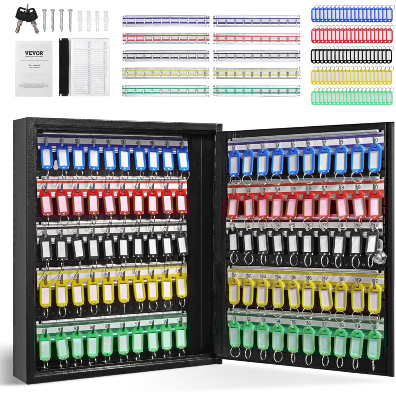 VEVOR Armadietto Portachiavi 100 Ganci Cassetta Di Sicurezza Portachiavi In Acciaio Da Parete 38x8,4x45 Cm, Armadietto Portachiavi Con Serratura Con 100 Etichette Per Garage Officina Hotel Albergo