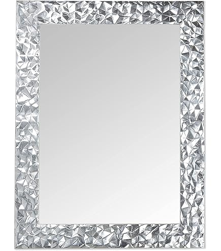 Specchio Adesivo Da Parete Yumyolk Specchio Decorativo Da Parete 70x100cm, Specchio Camera Da Letto Da Parete, Specchio Da Parete Moderno, Specchio Per Bagno Rettangolare, Specchio Ingresso Argenteo Specchi Da Parete Moderni ✅ [DECORAZIONE PARETI]: Specchio Rettangolare Grande, Elegante Raffinato per la Casa, Specchio Decorativo per Soggiorno, Sala, Camera da Letto o Ingresso. Wisfor Specchio da parete con diamante schiacciato, rettangolare, in vetro argentato, con bordo decorativo con cornice in cristallo scintillante glamour Questi Specchi Moderni da Parete sono Robusti e Perfetti per Decorare Qualunque Ambiente. Ogni Specchio da Parete è Imballato all'Interno di Pannelli in Polistirolo da 5 cm e Protezione in Masonite Superiore/Inferiore per una Protezione Ottimale contro gli Urti. ✅ [MONTAGGIO SEMPLICE]: Lo Specchio da Parete Decorativo Rettangolare è Dotato di un Sistema di Ganci Rinforzati per l'Installazione a Muro in Posizione Verticale ed Orizzontale. Supporto Posteriore in MDF Nero con Ganci per 2 Posizini. Specchio dal Design Moderno con Intarsi Specchio Asimmetrici.