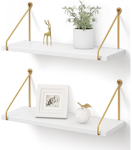 Queste mensole sono realizzate in MDF leggero ma allo stesso tempo resistente con robuste staffe di ferro resistenti a ruggine, corrosione e scolorimento MENSOLA GIA’ PRONTA - La mensola da parete di Baroni arriva già montata, dovrai solo occuparti di appenderla alla parete che desideri e ad addobbarla come più ti piace! Lo scaffale da parete si adatta a tutti gli stili, siano essi industriali, moderni, vintage o shabby. MENSOLA ORO BARONI HOME - La mensola a muro di Baroni Home è la decorazione perfetta per il vostro soggiorno, la parete della camera da letto o per la cucina e fornisce un funzionale contenitore per gli accessori decorativi come foto, oggettistica e libri. Un oggetto decorativo ma allo stesso tempo funzionale per tenere la tua casa ordinata e dove poter esporre foto, collezioni, libri, piccole piante, giocattoli, cosmetici, candele, cornici, barattoli, spezie ecc. Scaffale Angolare Baroni Home Mensola Da Parete, Mensola Rustica Per Bagno, Cucina, Camera Da Letto, Mensola Mensole Da Parete DECORATIVO & FUNZIONALE – La mensola sospesa presenta un design aperto e semplice in combinazione con le aste di ferro che gli conferiscono un tocco elegante.