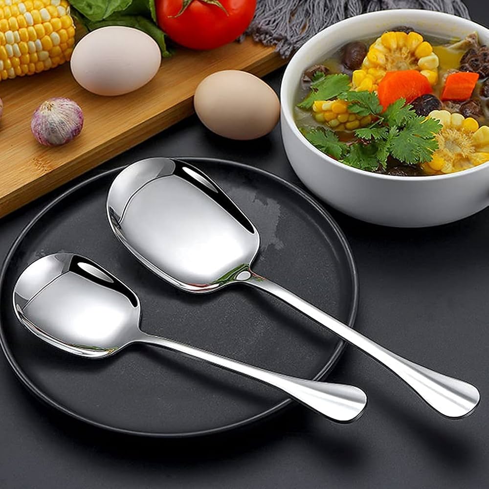 Godi una riduzione su 2 pezzi Cucchiai da portata in acciaio inossidabile resistente , posate da tavola con finura a specchio, adatti per ristoranti , hotel e uso in cucina, lavabili in lavastoviglie. Acquista i tuoi stili preferi. Spedizione gratui 🥗【Lista della confezione】Riceverete due cucchiaio da cucina, dimensioni 25*7,5 cm, peso 103,5 g, peso e spessore ragionevoli per garantire il massimo comfort, stoviglie molto pratiche. 🥗【Facile da pulire】Cucchiaio da portata fine lavorazione, bordi lisci, non c'è bisogno di preoccuparsi dello sporco residuo, facile da pulire, può essere lavato in acqua calda o messo in lavastoviglie. Cucchiaio Per Confetti 2 Pezzi Di Posate Da Portata In Acciaio Inossidabile 304, Forchetta Cucchiaio Per Confettata 🥗【Unique Design】Cucchiai da portata è dotato di un lungo manico ergonomico per un uso più sicuro e confortevole, soprattutto nelle zuppe calde o nella cottura ad alta temperatura. 🥗【Cucchiaio da portata in acciaio inox】Cucchiai da buffet per ristoranti è realizzato in acciaio inossidabile 304 per uso alimentare con finitura lucida, superficie liscia, rivestimento antiaderente, antiruggine, buona resistenza e durata, ideale per porzionare, cucinare e mescolare.