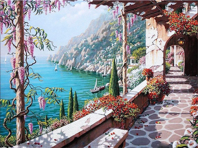 Wallphantom Paesaggio Punto Croce Da Ricamare Ricamo Kit Completo,Città