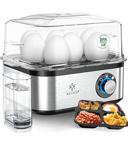 Grazie al cuociuova Caso E9 preparate la vostra colazione esattamente come vi piacere! Segnale acustico alla fine del tempo di cottura Regolamento elettronico Un controllo elettronico per lo spegnimento precoce impedisce la cottura a secco – nessun cattivo odore e nessun residuo di acqua. Cucina fino a otto uova contemporaneamente. Cuociuova di design per 8 uova. · Regolamento elettronico · Design in acciaio inox. · Indicatore di funzionamento a LED, coperchio in plastica trasparente Basta riempire l'acqua con il misurino, regolare il grado desiderato con la manopola e attendere fino al segnale acustico. Cuociuova per 8 uova con regolazione elettronica Cuisix Cuociuova Bimby Bosch TDA502412E Ferro Da Stiro, 2400 W, 180, 0 Decibel, Acciaio Cuociuova Elettrico Una deliziosa colazione cotta al mattino garantisce un perfetto inizio della giornata. Coperchio in plastica trasparente Segnale acustico alla fine del tempo di cottura. Contenuto della confezione: Cuoci uova, coperchio, portauova, due piccole ciotole, misurino con coperchio in silicone come protezione, istruzioni (lingua italiana non garantita).Per otto uova. Misurino con gommino, portariviste estraibile, avvolgicavo. Indicatore di funzionamento a LED, coperchio in plastica trasparente. Padella antiaderente Caso E9 – per uova perfette da colazione.