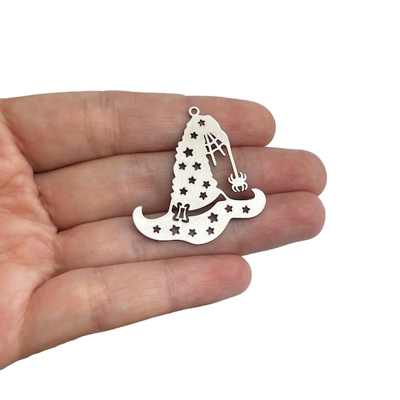 Fascino Per Cappello Da Strega In Acciaio Inossidabile Tagliato Al Laser, Cappello Da Mago Con Stelle E Fascino Ragnatela, Ciondoli Di Halloween, Risultati Di Ciondoli Per Orecchini In Acciaio - Italia