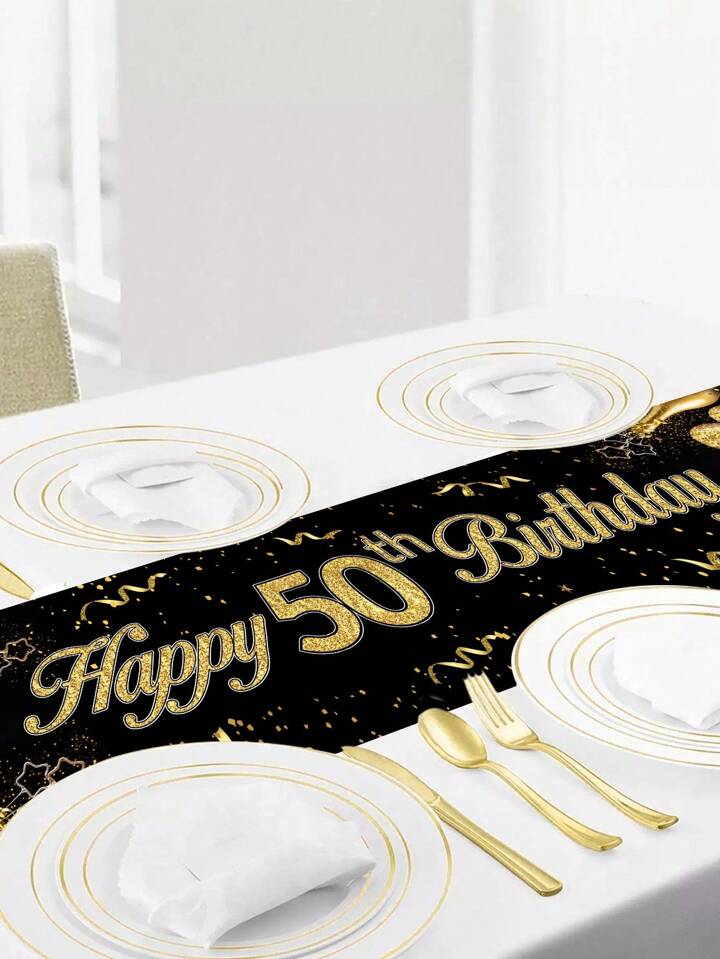 1 Tovaglia Runner Da Tavolo Per 50esimo Buon Compleanno In Oro