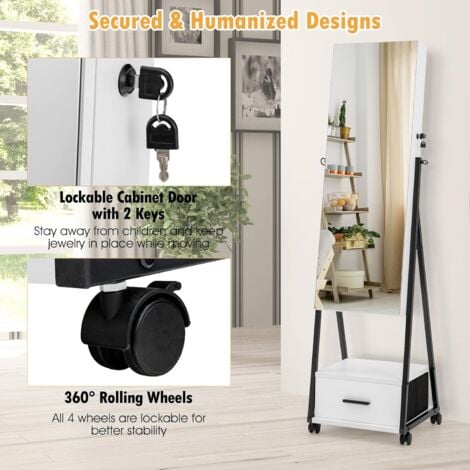 RELAX4LIFE Armadietto Portagioie Con Base Girevole A 360°, Specchio Da Terra Con Luci LED Luminosa, Specchio A Figura Intera, Organizzatore Per Gioielli E Accessori (Industriale, 164x56x56cm) : Amazon.it: Moda