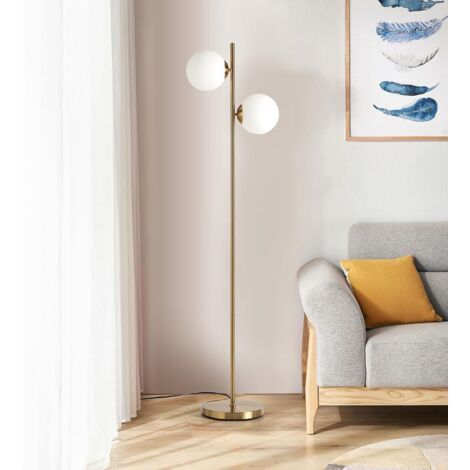 Lampada Da Terra Sferica Con 2 Luci Da 12w 2 Sfere In Vetro Opalino Interruttore A Pedale, Lampada Da Pavimento Oro - Costway