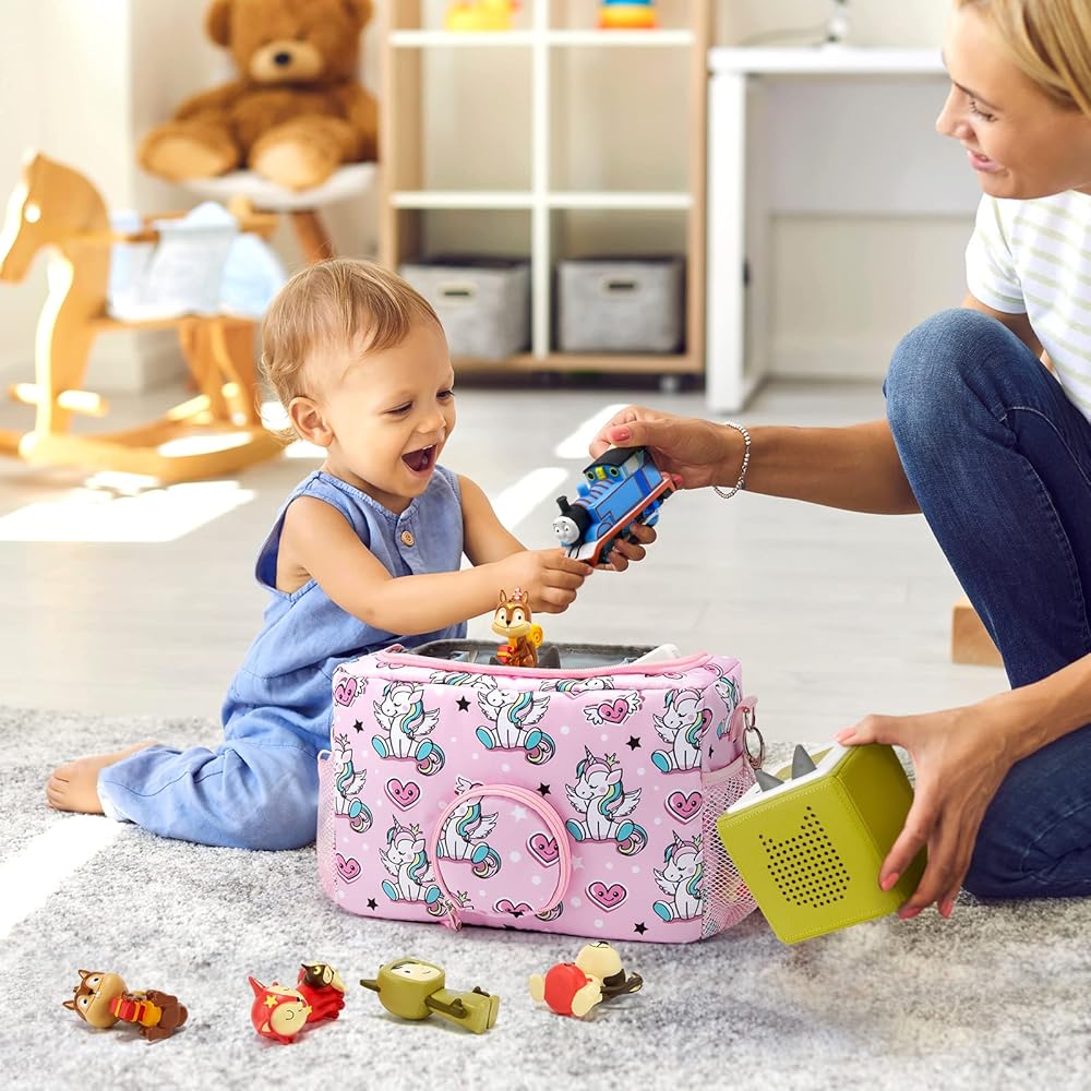 Non dovrai preoccuparti degli accessori sparsi ovunque, la grande capacità della scatola portatile MaidMAX ti consente di riporla. 【Progettato per i bambini】 La custodia per il trasporto con cerniera con motivo a unicorno dei cartoni animati e facile da trasportare con la tracolla o la tracolla e la doppia cerniera di grandi dimensioni lo rende facile da usare e aprire per le piccole mani. Campo di regolazione della cinghia: 70-137 cm. 【Progettato per Toniebox Starter Set】Scatola da trasporto portatile MaidMAX adatta per Toniesbox, personaggi di Tonies Audio Play, cuffie, stazione di ricarica e altri accessori. Buy MaidMAX Portable Carrying Case Compatible with Tonies Kids Audio Player Starter Set and Tonies Figures Characters, Carrying Box for Boy Girl, for Tonies Audio Player , Headphones, Charging Station etc In questo modo la radio Toniebox diventa più durevole. 【Design della finestra anteriore per altoparlanti】 Non è più necessario estrarre ripetutamente Toniebox, puoi semplicemente aprire la finestra dell'altoparlante e ascoltare la storia o la musica. MaidMAX Custodia Da Trasporto Portatile Compatibile Con Tonies Descrizione prodotto Con la borsa MaidMAX Toniebox il vostro bambino si innamorerà della lettura e dell'organizzazione Non devi preoccuparti che il colpo danneggi la scatola Toniesbox, MaidMAX ti offre una protezione completa. Riduci efficacemente l'usura della tua Toniesbox. Tempo felice Abbastanza grande spazio per riporre i caricabatterie, le statuette tonie, le cuffie o altri accessori di cui hai bisogno per far passare i tuoi bambini un grande momento con gli amici. Applicazioni: casa, parchi, parchi giochi, scuole, ristoranti, ecc. Contenuto della confezione: 1 borsa per il trasporto Toniebox + 1 cinturino regolabile. Intervallo di regolazione della cinghia: 70-137 cm Dimensioni della cassa: 18 x 28 x 14 cm.
