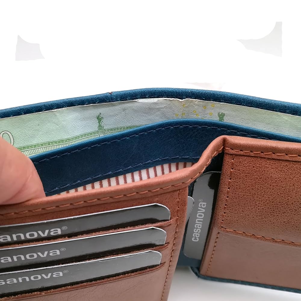 Sicurezza RFID: proteggi le tue carte con la nostra tecnologia RFID, garantendo che le tue informazioni personali rimangano al sicuro. Versatilità e stile: scegli un accessorio che completi qualsiasi outfit. Portafoglio da uomo americano CON portamonete in pelle, pelle Ubrique, portafoglio porta carte orizzontale, fatto a mano, protezione RFID, 10095 Marrone Misure: 10,8 x 8,8 cm circa. Capacità per 6 carte, perfetta per l'uomo moderno che apprezza l'eleganza e la funzionalità. Il nostro portafoglio da uomo in pelle è il regalo ideale per compleanni, anniversari o come segno di apprezzamento. Il nostro portafoglio da uomo in pelle senza portamonete è il perfetto connubio tra funzionalità e moda, pensato per l'uomo contemporaneo. Design classici, casual, moderni, innovativi... Uno dei punti di forza di questi portafogli in pelle è la loro produzione artigianale. Qualità della pelle superiore: il nostro portafoglio da uomo in pelle con portamonete, realizzato con autentica pelle Ubrique, garantisce durata e stile. Ideale come regalo, il portafoglio è etichettato e custodito in una bella scatola. Portafoglio Uomo Con Portacarta Portafoglio Da Uomo Americano SENZA Portamonete In Pelle, Pelle Portacarte Uomo In Pelle