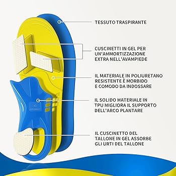 Questa funzione non solo ottimizza le tue prestazioni, ma protegge anche da infortuni legati allo sport, come la fascite plantare. TRASPIRABILITÀ OTTIMALE: prova il comfort delle solette traspiranti, mantenendo i piedi freschi e privi di umidità durante ogni gioco o attività sportiva. TRASPIRABILITÀ OTTIMALE: prova il comfort delle solette traspiranti, mantenendo i piedi freschi e privi di umidità durante ogni gioco o attività sportiva Il massimo comfort nelle tue scarpe da calcio Indicazioni Riduce il dolore al piede e tallone, supporta la fascite plantare previene lesioni come metatarsalgia neuroma di Morton Indicazioni Istruzioni per la posa, l'uso, la pulizia e la manutenzione. La perfetta combinazione di materiali premium e tecnologia gel avanzata garantisce un assorbimento degli urti superiore, alleviando la pressione su piedi e articolazioni, anche durante i momenti più intensi del gioco. ANTISCIVOLO: Proteggi ogni passo con le nostre solette antiscivolo, progettate per fornire una presa salda sulle scarpe sportive. Progettati per ridurre la pressione sulle articolazioni, solette ideali per fascite plantare. Le solette in gel sono ideali per il calcio Vivi il calcio al massimo con FOOTGEL FOOTBALL. Unisciti all'élite del calcio che si affida ai nostri modelli per offrire un'esperienza di gioco eccezionale. Solette Ortopediche Migliori FOOTGEL Solette In Gel Da Uomo Per Solette Sportive Da Calcio Con Supporto Ottimale Durante La Partita. Evita Il Dolore Con Le Solette Per Fascite Plantare. Solette In Gel Da Uomo Lavorano Il Massimo Solette In Memory Foam Includerebbe informazioni su come tagliare l'inserto per adattarlo alla misura desiderata e posizionarlo correttamente nella scarpa per il massimo supporto e comfort. Adattato per seguire i movimenti naturali dei tuoi piedi. Con FOOTGEL FOOTBALL, il tuo comfort e la tua sicurezza sono supportati da una qualità senza pari. Descrizione prodotto Scopri una nuova dimensione di comfort e prestazioni con le solette FOOTGEL FOOTBALL, una scelta eccezionalmente consigliata per gli appassionati di calcio. MASSIMA AMMORTIZZAZIONE: sperimenta un'ammortizzazione di alta qualità che assorbe efficacemente gli impatti durante ogni passo. Le solette impediscono scivolamenti e scivolamenti, offrendo stabilità su qualsiasi superficie di gioco. Ogni paio di solette FOOTGEL FOOTBALL è stata sottoposta a rigorosi test di qualità e prestazioni dal prestigioso Centro Analisi Biomeccaniche Umana, offrendo un'esperienza ottimale e affidabile in ogni partita.