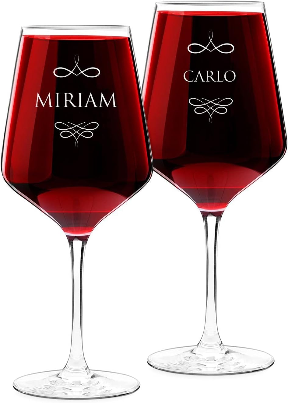Per dare un tocco di magia personale al tuo regalo puoi personalizzarlo con un’incisione e un testo a piacere scelto da te . Il nostro Set è composto da 2 calici in vetro di alta qualità da una capienza massima di 350 ml. Abbiamo analizzato per te 12 su Maverton Calici da vino- incisione personalizzata- 350 ml- set da 2 pezzi in vetro- ideale per il vino rosso e bianco- idea regalo di anniversario unico- per la coppia- Passerotti cercando di capire lo stato d'animo degli utenti dopo l'acquisto Regalo Uomo Compleanno Maverton 2 Calici Da Vino Rubino - 530 Ml XL - In Vetro - Ideali Per Spillatore Birra Da Casa Componi i tuoi testi e associali ad una grafica. Il set dei calici è ideale per ogni tipo di festa o incontro con gli amici e parenti ed è in grado di rendere le vostre serate incantevoli e la degustazione dell’alcol più piacevole… È consigliabile, per un buon mantenimento dell’estetica dei calici, usare detersivi delicati per la loro pulizia e il lavaggio manuale affinché sia l’incisione che il vetro non si opacizzino. Questo Kit di calici, grazie al loro design e alla forma elegante e raffinata si presenta come un regalo ideale per tutte le coppie, soprattutto per quelle che condividono il motto: “Un pasto senza vino è come un giorno senza sole ” Anche per questo il nostro set risulta essere un pensiero perfetto per marito e moglie.. che sia vostro coniuge, vostri amici, genitori, nonni o altri parenti, ma è anche adatto per tante occasioni come: nozze, San Valentino ecc.. UN’INCISIONE PROFESSIONALE! I nostri calici per il vino affascinano per la loro forma, che pur essendo classica resta impareggiabile. UN RAFFINATO KIT DI CALICI!