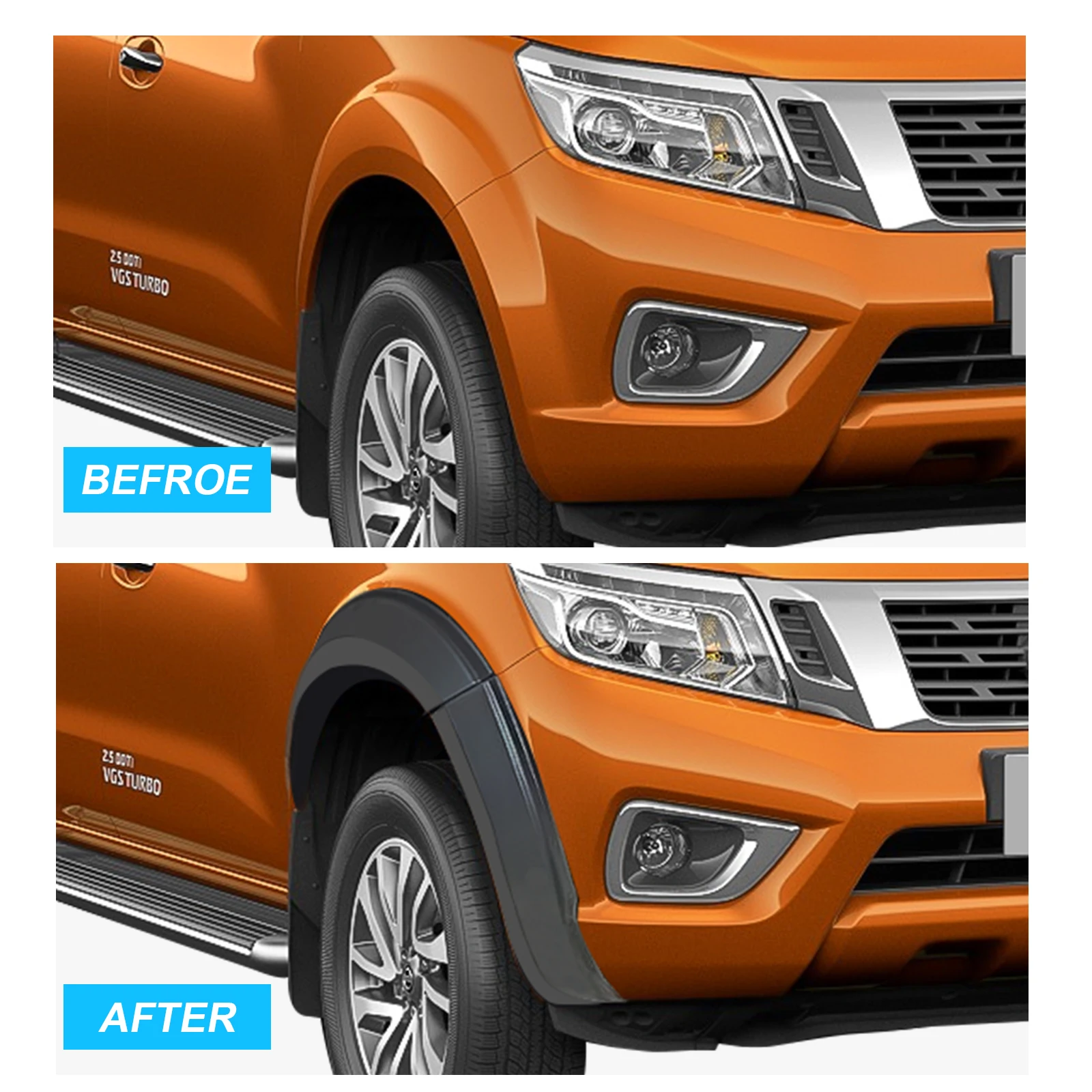 Inoltre, protegge efficacemente la carrozzeria del pick-up Navarra da sassi, fango e altri detriti stradali. Caratteristiche del prodotto: Eccellente resistenza agli agenti atmosferici, resistenza agli urti e resistenza alla corrosione chimica Dimensioni imballo: 112*70*20 cm/Peso imballo: 8 kg Materiale ABS di alta qualità La confezione include: parafanghi da 6 pezzi. Realizzato in materiale ABS di alta qualà, resistente e resistente agli urti. 2. Finura nera opaca liscia, può essere verniciata facilmente Stile: stile tascabile, imbullonato, stile fuoristrada. Descrizione prodotto Parafanghi Navara D23 NP300 🛻L'installazione è semplice e non richiede alcun danno al veicolo. 🛻Parafanghi NAVARA NP300 D23: adatti solo per i modelli a doppia cabina NISSAN NAVARA NP300 D23 (2015-2020) Navara N-Guard, Navara Trek-1°, Navara Tekna, Navara DAP-Guard. Dimensioni: la larghezza della superficie è di circa 8,6 pollici (220 mm). Dimensioni estese: allargate di 20 mm. Estensioni Parafango Compatibili Con Nissan Navara NP300 D23 Dal 2014 Al 2017 Senza AdBlue 4 Tlg Con ABE TÜV Adatto ai modelli con tappo del carburante su entrambi i lati del passaruota posteriore. 🛻Parafanghi robusti e di alta qualità: i parafanghi sono realizzati in plastica ABS di alta qualità e resistente, realizzati mediante processo di stampaggio a iniezione monopezzo, durevole e stabile, resistente al vento e al freddo, resistente ai raggi UV e non facile da sbiadire. 🛻Estensioni del passaruota extra larghe da 8,6 pollici: estensioni del parafango imbullonate in stile tascabile, aumentano la larghezza del veicolo di circa 20 mm, la larghezza di copertura dell'area è di circa 8,6 pollici (220 mm).