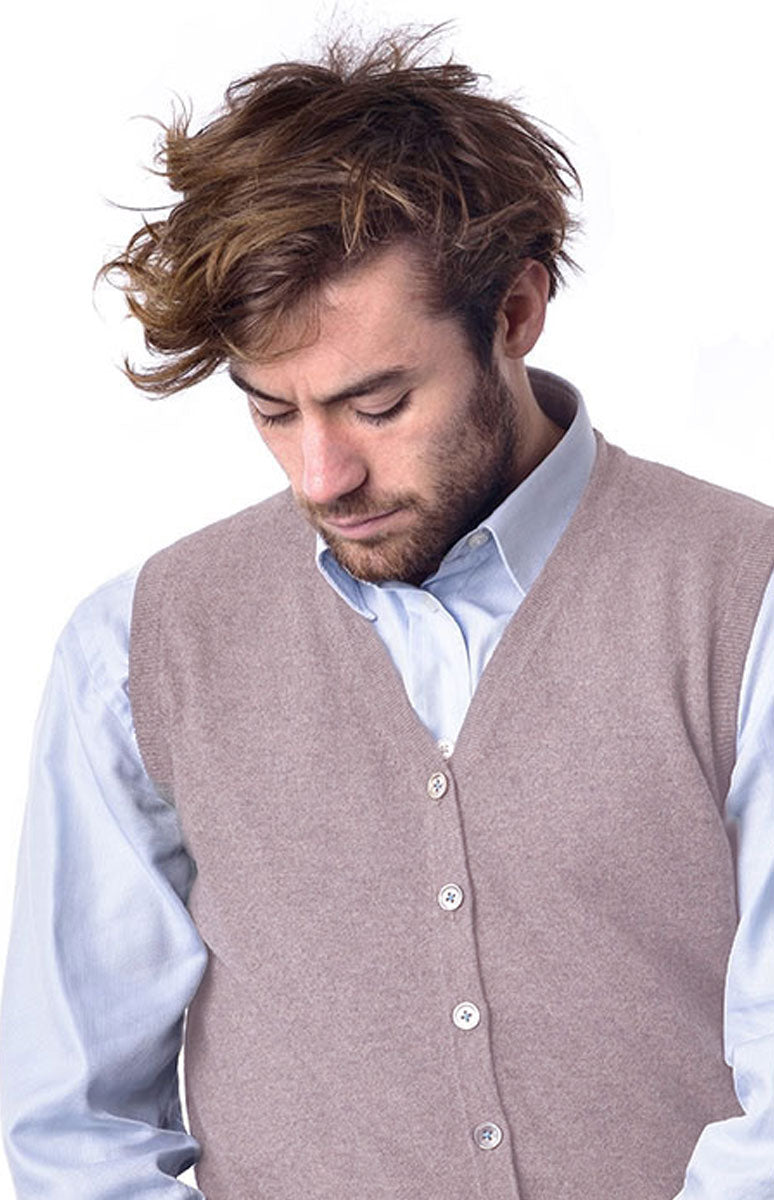 Hombre Cárdigan De Cachemira Con Cuello Pico Topo - Gobi Cashmere