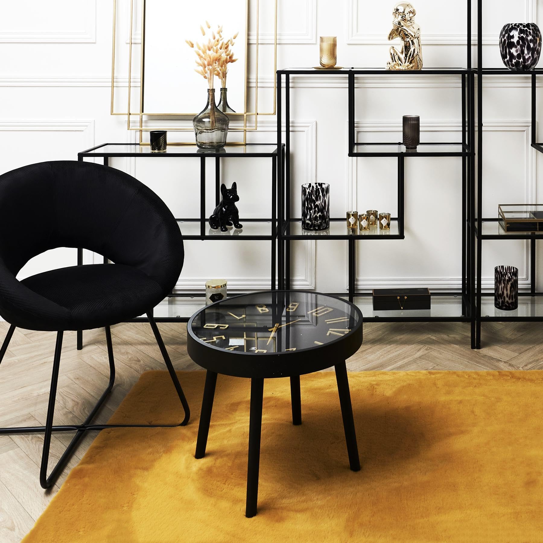 The Home Deco Factory - Fauteuil Rond En Velours Cotelé Giulia Noir