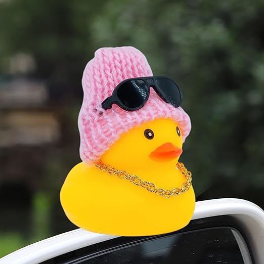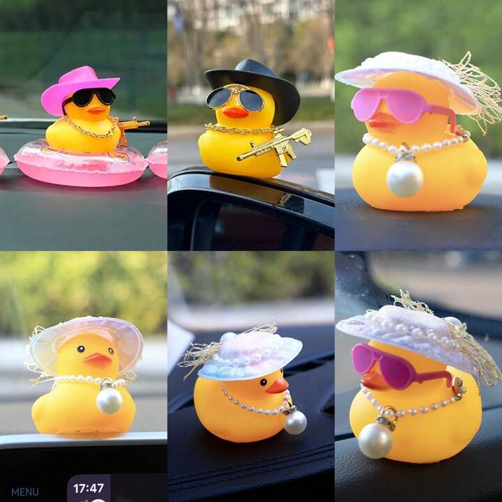 Wonuu Paperella In Gomma Per Auto, Decorazione Per Cruscotto Con Cappello Da Sole, Collana, Occhiali Da Sole, Decorazioni Per Cruscotto Auto, C-Duck-Black Cowboy Hat-Scarf