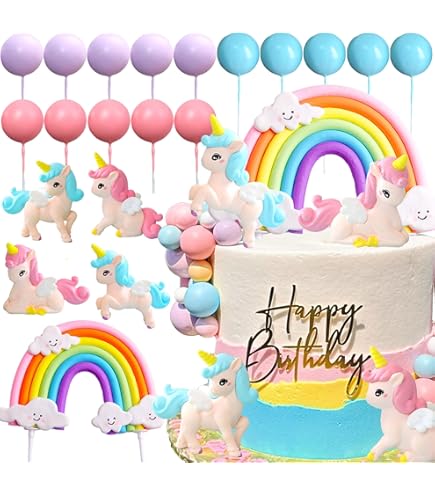 LaVenty 33 Pezzi Topper Per Torta Arcobaleno Rosa Decorazioni Per Torta Arcobaleno Unicorno Boho Cake Topper Compleanno Per Ragazze - AliExpress