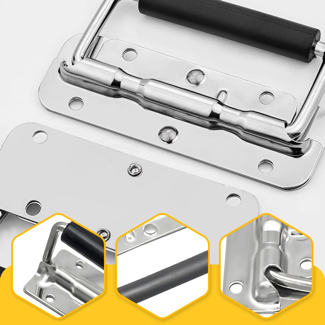 Maniglie Pieghevoli Con Molla MOBILI DUREVOLI CASSETTE Degli Attrezzi Clip Per Saldatura Regolabili Cassetta Per Attrezzi [Dimensione specifica]: Lunghezza della maniglia pieghevole a molla 110 mm, larghezza 77 mm (compresa la parte sporgente della maniglia), Richiede le proprie viti e strumenti di montaggio [Ampiamente usato]: manico pieghevole a molla ampiamente utilizzato in tutti i tipi di scatole di imballaggio, ma anche per strumenti musicali, cassette degli attrezzi, porte in ferro, armadi, cassetti e così via 2 Pezzi Maniglia Pieghevole, 100mm Maniglia a Molla Maniglia Pieghevole per Casse Cassetta Degli Attrezzi Maniglie Pieghevoli Maniglia Della Scatola Caricata a Molla per Cassetta Degli Attrezzi 4,7 su 5 stelle 25 [Materiale reale]: manico pieghevole a molla in acciaio inossidabile 304, gomma isolante pressofusa ad alta temperatura e rivetti rinforzati, per non strangolare la mano, in modo che la fusione tra i pezzi in acciaio sia più solida e stabile, ispessimento del braccio, maggiore capacità di carico e più durevole