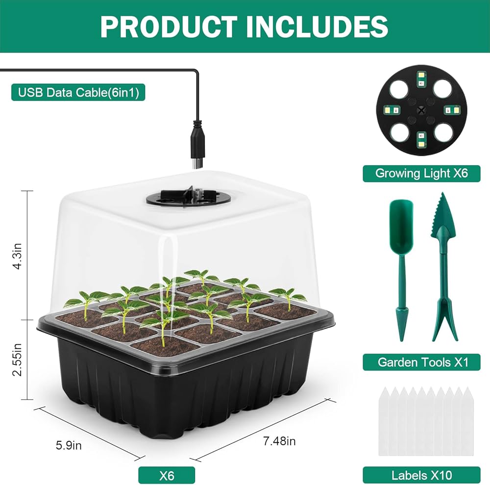 Radicante Per Talee KAHEIGN 12Pz Vassoi Di Avviamento Dei Semi, 144 Celle Vassoi Per Semi Erbe Aromatiche Trapianto facile: la base staccabile aiuta a creare un ambiente ideale per la crescita delle piante. Vassoio di avviamento per semi, confezione da 5/60 celle, kit di base per semi da interni, per iniziare i semi delle piante, contenitori riutilizzabili per germogliare piante d'appartamento, vassoio Facilitando la rimozione sicura delle piantine, questo design supporta una crescita sana fin dalle prime fasi, garantendo una crescita robusta mentre le piante passano a contenitori più grandi o ambienti esterni. Inoltre, aiuta a mantenere i livelli di umidità richiesti e facilita l'osservazione dei progressi nella crescita dei semi. Se non sei completamente soddisfatto, faccelo sapere e offriremo un rapido rimborso o sostituzione, senza fare domande. La copertura trasparente consente il passaggio della luce, favorendo la fotosintesi e l'assorbimento dell'energia luminosa necessaria per la crescita delle piantine. Trasparente per una facile osservazione: la copertura trasparente per piantine aiuta a simulare un ambiente in serra, fornendo una condizione di crescita ideale per i semi poiché richiedono temperatura, umidità e luce adeguate durante la germinazione.