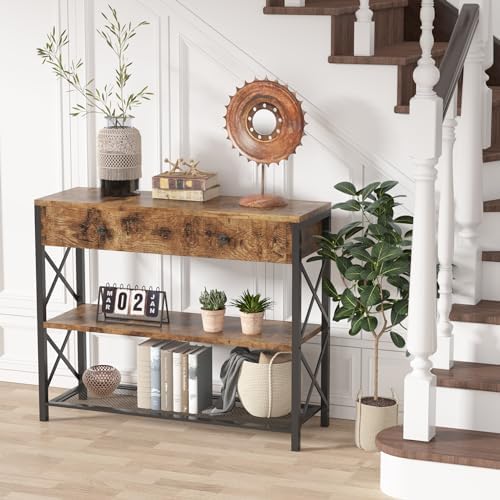 VASAGLE Tavolo Consolle, Tavolo D'ingresso, Gambe Curve, Piano Del Tavolo Allungato, Per Soggiorno, Corridoio, Camera Da Letto, Stile Industriale, Marrone Rustico E Nero LNT089B01 : Amazon.it: Casa E Cucina