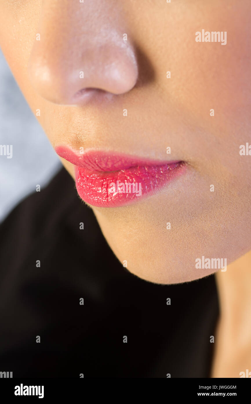 Le Labbra Della Donna Con Rossetto Rosso Ed Il Bacio Gesture Fotografia