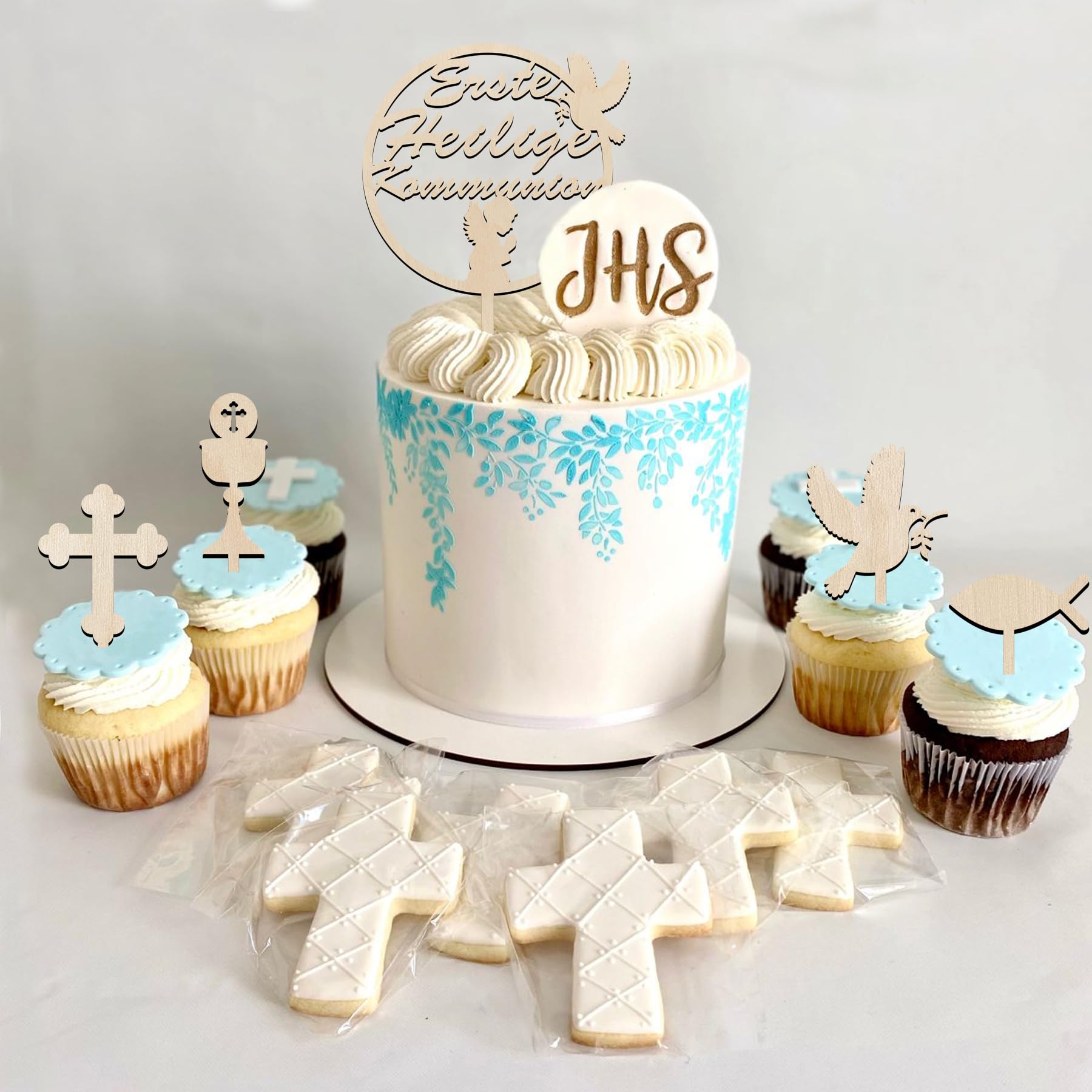 3 Decorazioni Per Torte Della Mia Comunione, In Legno, Per Comunione, Cresima, Torta, Pesce, Feste, Decorazione Per Torte Per Ragazze