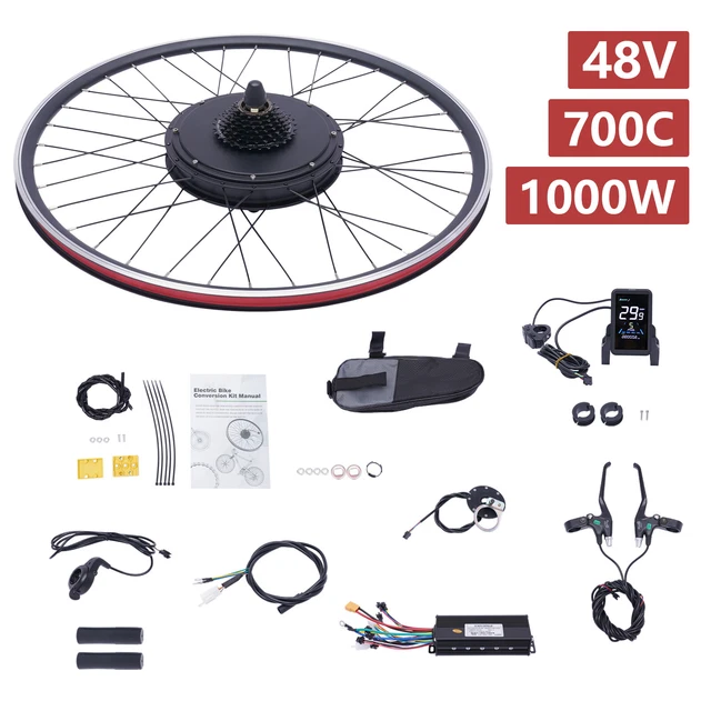 Kit Di Conversione Ebike Kit Per Bicicletta Elettrica 48V 1000W Motore Del Mozzo Della Ruota Posteriore 20 26 Con Display LCD, Controller Intelligente E Sistema PAS Per Bici Da Strada Kit