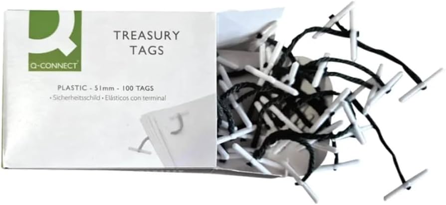 Etichette del tesoro per il fissaggio di carte perforate sfuse Etichette terminali in plastica leggera Capacità: 51 mm 100 pezzi Buy Q Connect - 51mm Plastic Ended Treasury Tags - Pack of 100 . Get the best prices with fast delivery. Order today - MPN: KF04571 . ... 51mm Plastic Ended Treasury Tags - Pack of 100 - KF04571 . Add to compare Image is for illustrative purposes only. Pl Q-Connect Delux A4 Clear Green Strip Punched Pocket (Pack Of 100) - KF01121