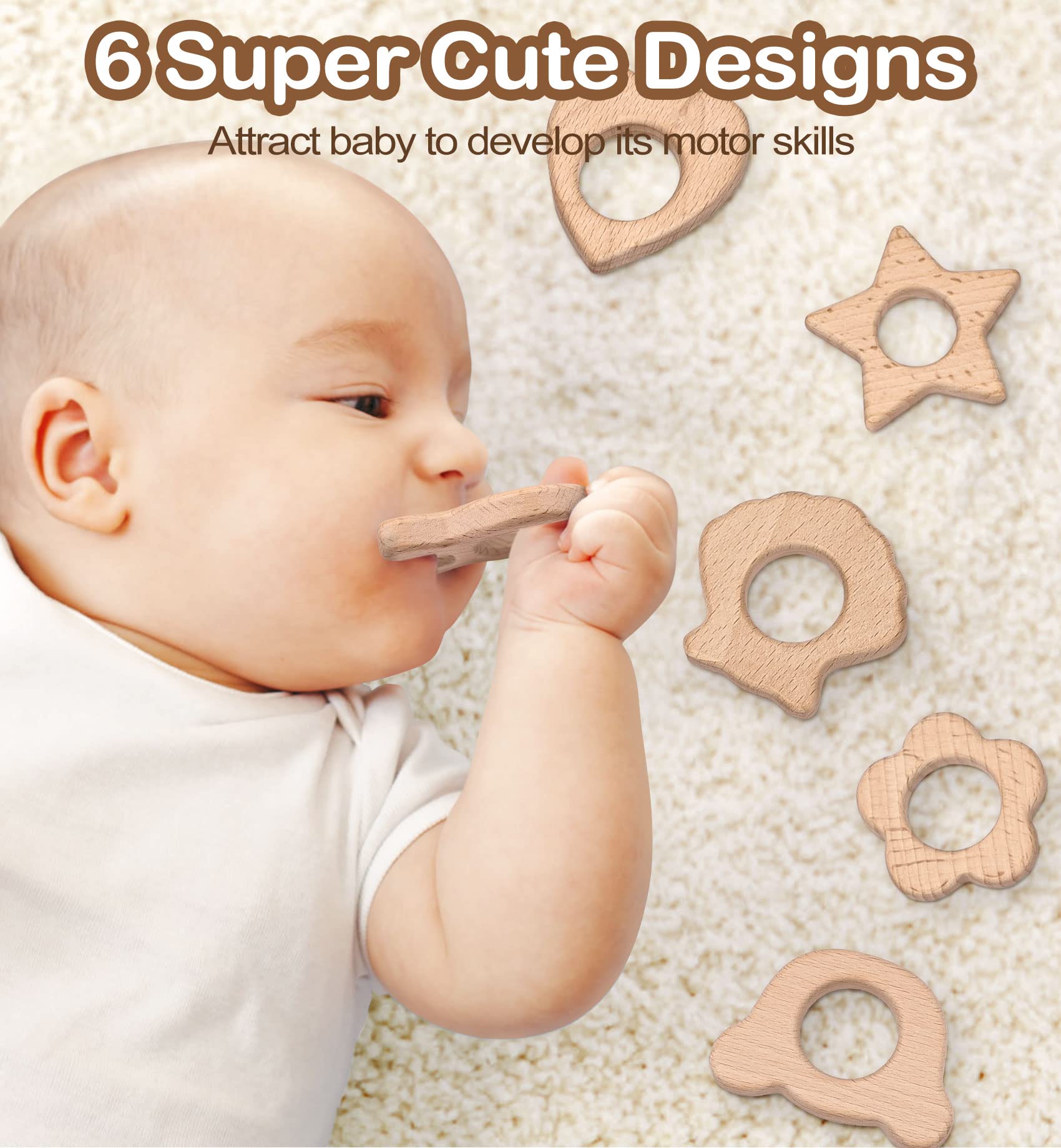 YoungRich 6 Pezzi Bambino Massaggiagengive In Legno Giocattoli Fai Da Te Dentizione Kit Testa Di Coniglio Fiori Testa Di Topolino Cuoricini Stelle Conchiglie Ciondolo Fatto A Mano