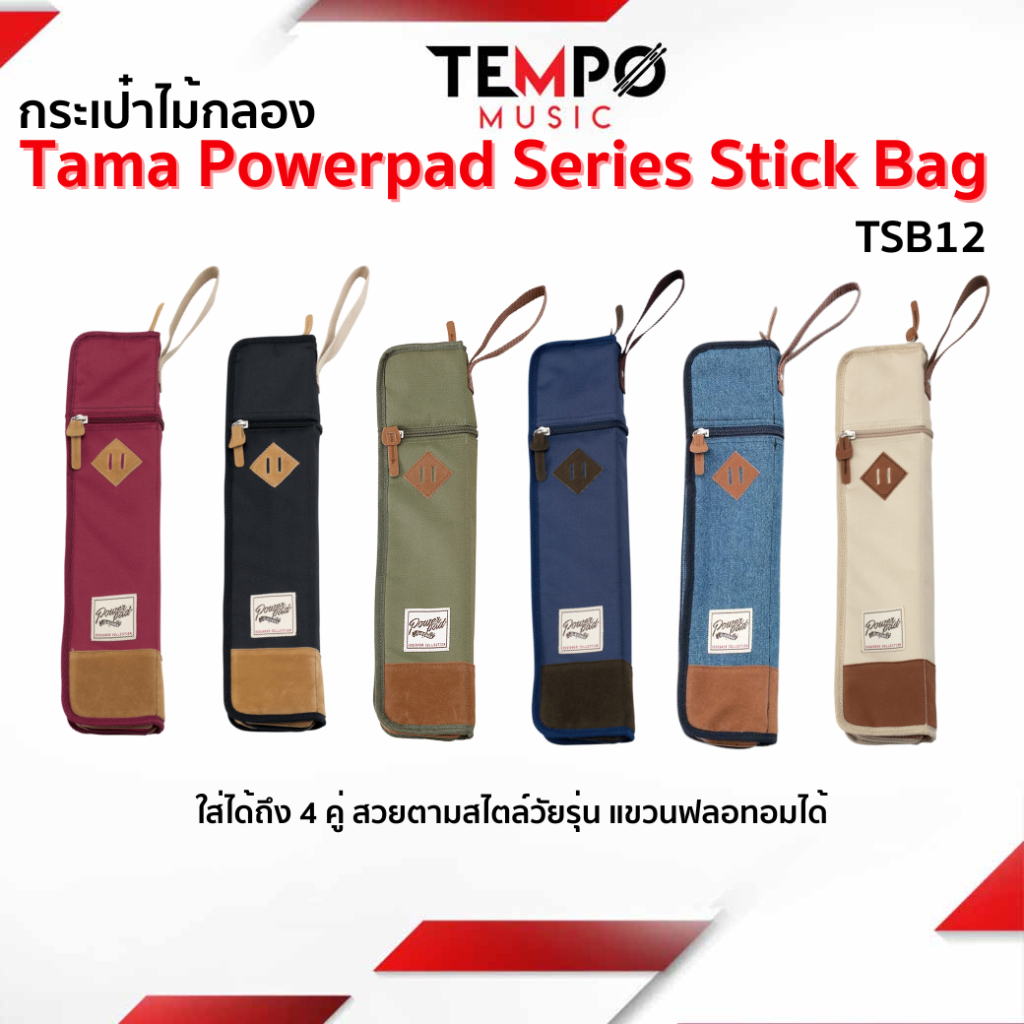 Tama TSB12-MG Powerpad Designer Collection Stick Bag - Moss Green (Tama Tama TSB12MG - POWERPAD Designer Sticks Bag Moss Per 6 paia di bacchette o bacchette Tasca interna inclusa Logo Powerpad
