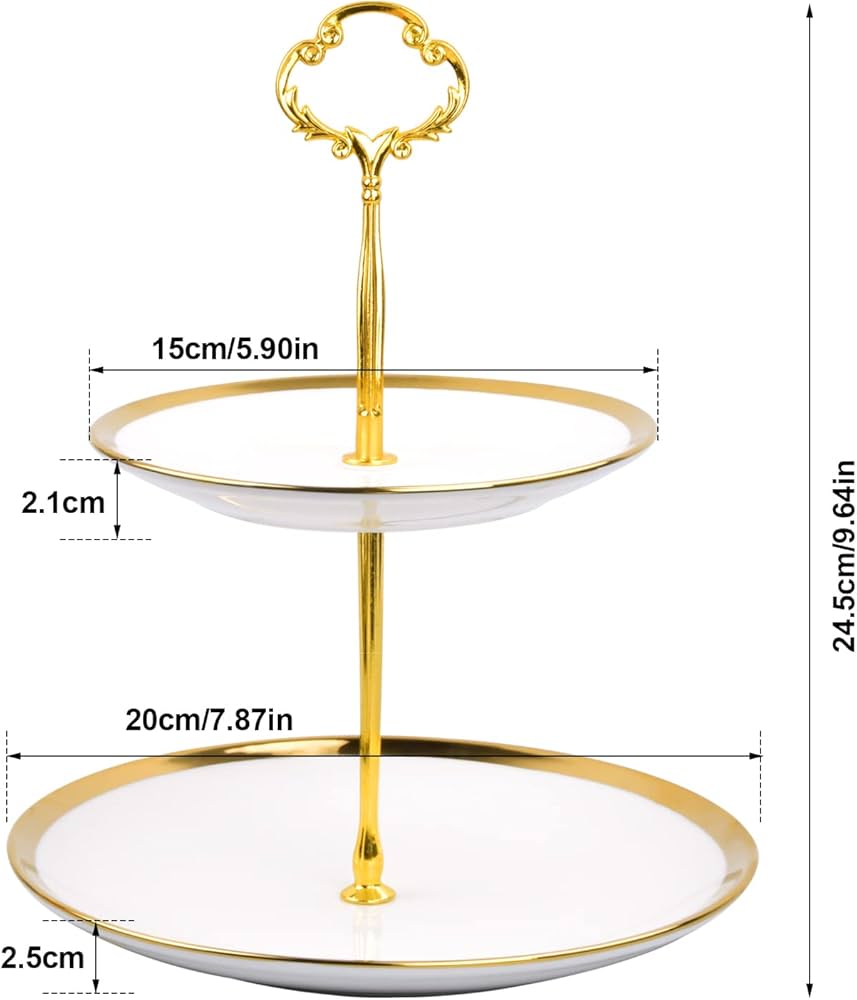 Supporto Per Torta, 2 Livelli Alzata Torta, Supporto Rotondo Per Dessert In Ceramica, Supporto Per Cupcake, Torte Dolci Stand Frutta E Dolci, Frutta Piastra Supporto Con Manico Dorato Per Festa, Oro