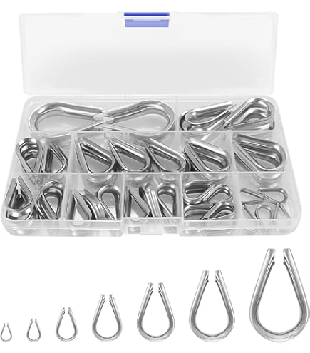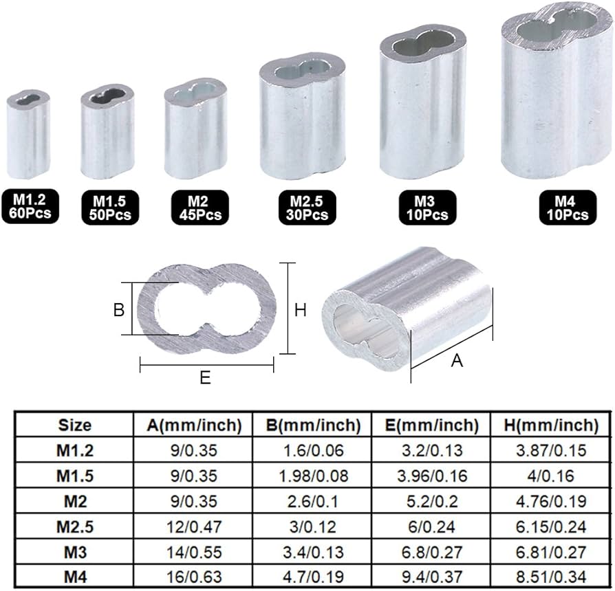 Set Di 250 Ditali Per Funi Metalliche, 6 Dimensioni Set Di Redance Per Corda Metallica, Assortimento Di Redance Per Cavi, Con Puntali A Doppio Barilotto E Ditali, Per Fune Metallica E Cavo Il pacchetto include: Kit assortimento di funi metalliche in lega di alluminio da 250 pezzi Set di ditali per fune metallica di 5 dimensioni M1.5 - M5 + 6 manicotti in alluminio per fune metallica M1.2mm M1.2mm totale peso della scatola: 270 g Dimensioni della scatola: 17,6 x 10 x 2,3 cm. Robusto e durevole I ditali sono realizzati in acciaio inossidabile 304, offrono una buona resistenza alla corrosione e alla ruggine Ditale per fune metallica: M1,5 mm ---------- 10 pezzi Appena. I manicotti ad anello a crimpare sono realizzati in alluminio, resistenti e durevoli, affidabili e hanno una lunga durata. ✔【Facile da usare】I manicotti a crimpare in alluminio sono facili da usare, basta bloccare entrambe le estremità del filo guida con una morsa, una pinza o uno strumento di compressione; Soluzione per il fissaggio e il trasporto di cavi generali. ✔【Dimensioni】Anello triangolare (involucro della fune metallica) M1,5, M2, M3, M4, M5, manicotti per fune metallica, manicotti ad anello in alluminio M1,2 mm, M1,5 mm, M2 mm, M2,5 mm, M3 mm, M4 mm. 1,2 mm ----------- 10 pezzi Quantità totale: 250 pezzi