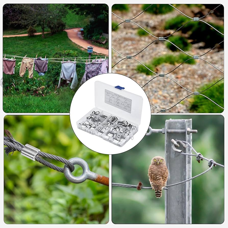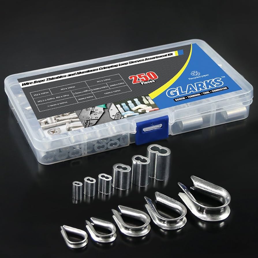 Set Di 250 Ditali Per Funi Metalliche, 6 Dimensioni Set Di Redance Per Corda Metallica, Assortimento Di Redance Per Cavi, Con Puntali A Doppio Barilotto E Ditali, Per Fune Metallica E Cavo