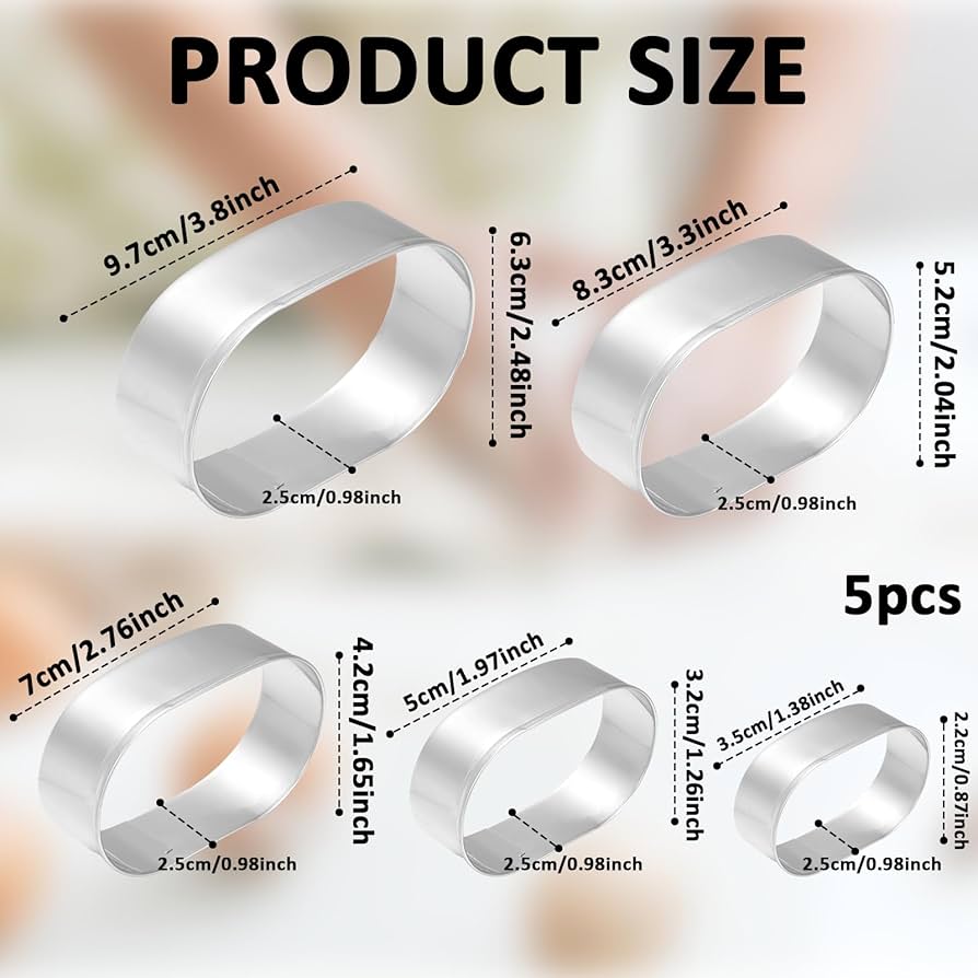 BekkiB Set Di 5 Formine Per Biscotti Oval In Acciaio Inox In 5 Misure