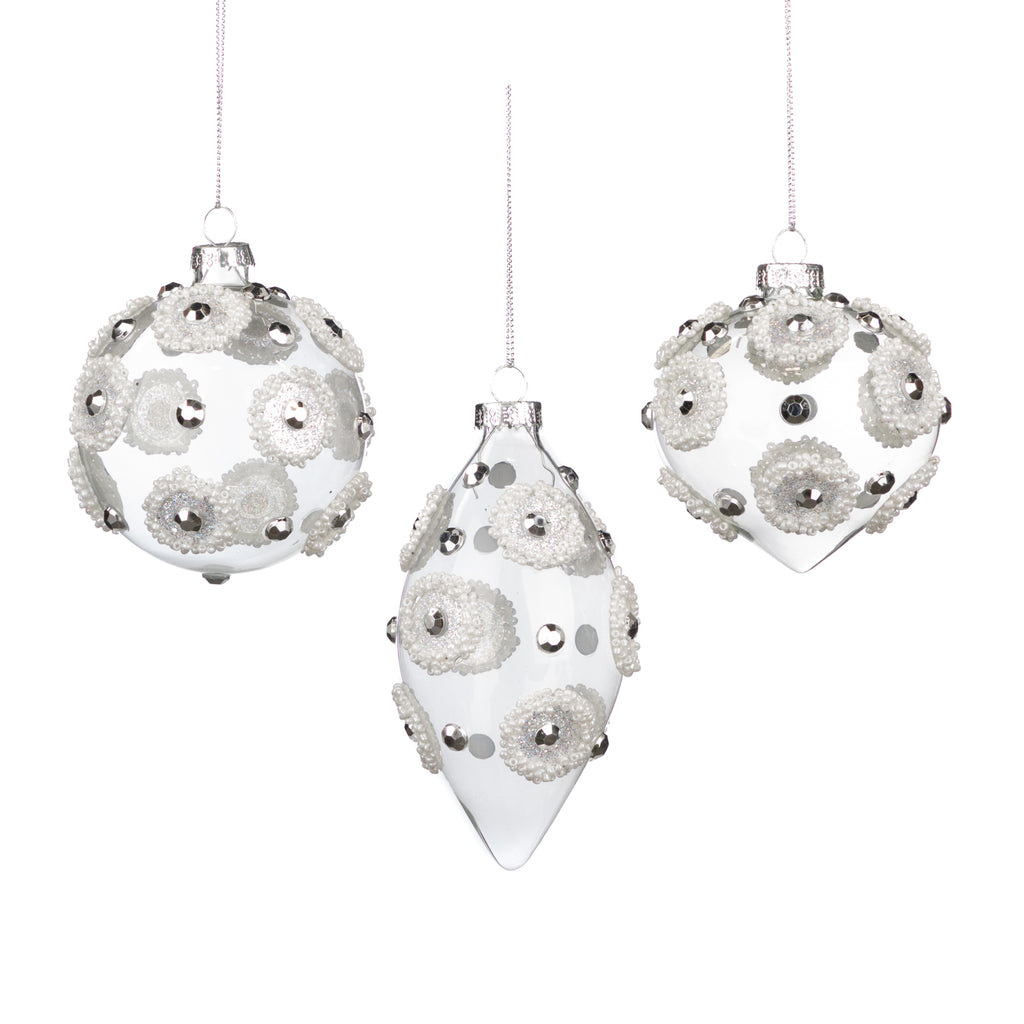 Lotto Di 6 Palline Di Natale Di Vetro (D80 Mm) Filou Bianco - Addobbi