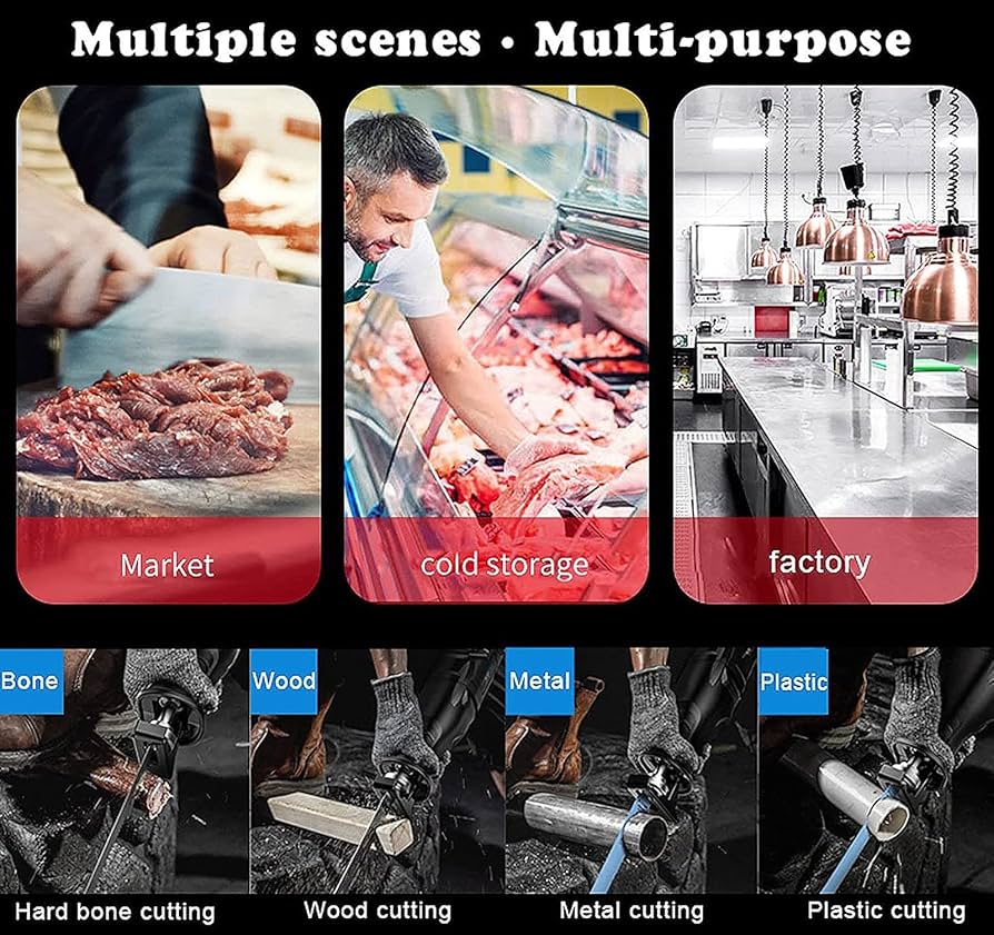 Sega per ossa elettrica: La nostra sega per carne può tagliare facilmente e senza problemi ossa, carne e pesce congelati. specifico:Nome: Sega elettrica per ossaMateriale: Acciaio inoxContenuto della confezione:Sega per ossa × 1, lama × 4 (2 in acciaio inox, 1 per la lavorazione del legno, 1 in metallo), scatola di immagazzinamento × 1 GEHPYYDS 1050W/1300W Sega per Ossa di Carne Commerciale, Sega per Macellaio Elettrica Casa, Segaossa Professionale Palmare per Tagliare la Carne e Le Ossa Congelate in Piccoli Pezzi,Red-1300W Sega Taglia Ossa Professionale Sega Per Ossa Di Carne Commerciale, Sega Per Macellaio Elettrica Casa, Segaossa Professionale Palmare Per Tagliare La Carne E Le Ossa Congelate In Segaossa Da Macellaio Ampiamente utilizzato in cucine, supermercati, ristoranti, ecc. Impugnatura antiscivolo: Il manico della sega per carne adotta una struttura antiscivolo e l'impugnatura in gomma a doppio strato che assorbe gli urti offre un'esperienza di taglio più stabile e confortevole. Grazie alla particolarità del suo materiale, la lama è molto facile da pulire, non facile da arrugginire, affilata e stabile, e durevole. La fusoliera può essere ruotata di 180°, per tagliare facilmente alimenti disossati come costine e cosce di pollo. Vi aiuteranno a tagliare con facilità ossa, carne e pesce congelati.Caratteristiche:1. Funzionamento sicuro, design a velocità infinitamente variabile, la velocità di taglio può essere controllata premendo l'interruttore.2. Ingranaggi di precisione, basso rumore di lavoro.3. Sistema di test accurato, nessuna deviazione nel taglio verticale.4. Il corpo ruota di 180°.5. Regolazione a 6 velocità.