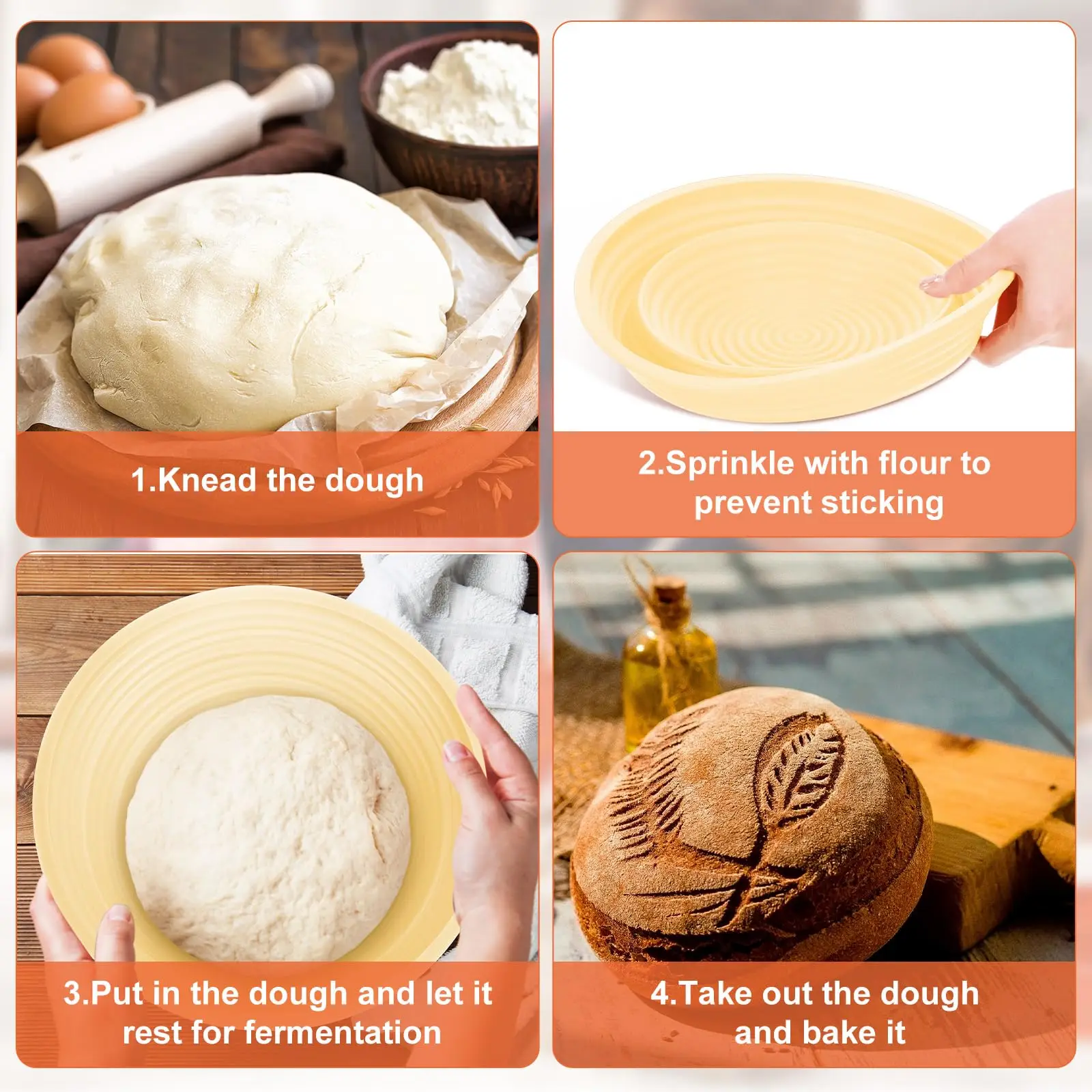 Banneton - Set Di Cestini Per Lievitazione Pane In Silicone, Rotondi Da