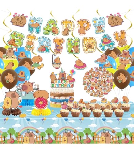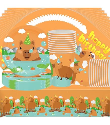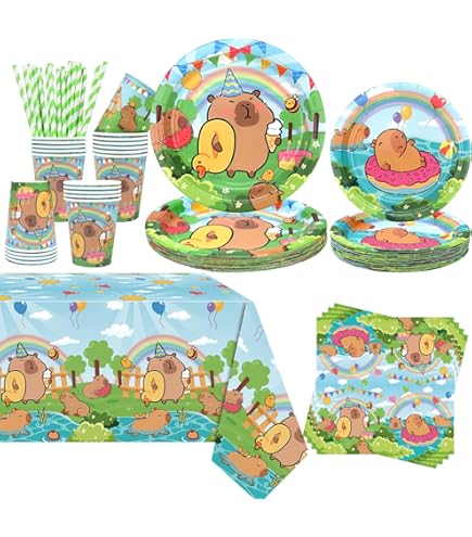 Doyomtoy Capybara Serve per 20 ospiti, tovaglie, piatti, tazze, tovaglioli per accessori per feste di compleanno. 1 offerta da 2099€2099 Materiale di alta qualità: durevole e non si piega facilmente, non si strappa o si rompe, ideale per dessert, cene musicali e bevande. Godetevi la festa e risparmiate tempo: potete organizzare una festa a tema che stupirà i vostri ospiti per tutta la notte. Capibara Peluche Capybara Fornure Per Feste Di Compleanno Per Bambini Cartoon Dandys World Scelta perfetta per feste di compleanno per bambini. Design raffinato: i nostri articoli per feste dopo il set di stoviglie The Wasserschwein-Delfin.