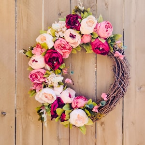Ghirlanda Di Fiori Autunnali Per Porta, Ghirlanda Di Fiori Autunnali Rosa E Bordeaux Per Vetrina - Etsy Italia